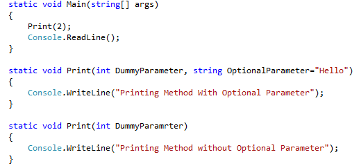 Much before Optional Parameters came in, C# developers used to depend on Method Overloading for mimicking Optional Parameters. Consider a scenario where both exists, what would be the output ?