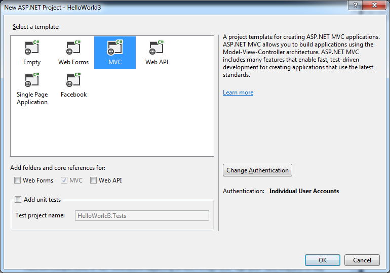 Ok Tim to do some coding. Let’s start by creating a MVC application in Visual Studio.
