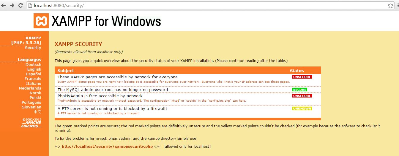Step 2: The next step involves setting password for “root” in your MySQL Server. You can do the same using the following URL and selecting “http://localhost:8080/security/xamppsecurity.php” as seen in the screenshot.