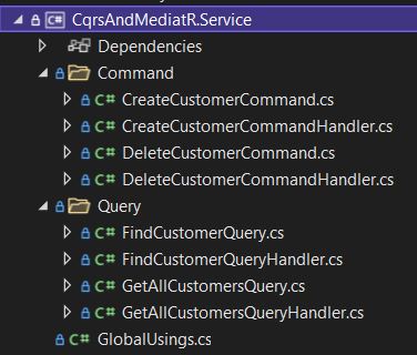 - CqrsAndMediatR.Service – Contains the CQRS separation of Command and Query