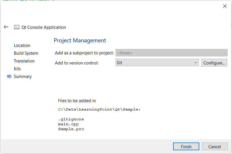 There are mainly 2 files that are created for us. The first one is the project file (qmake), usually with the file extension .pro.